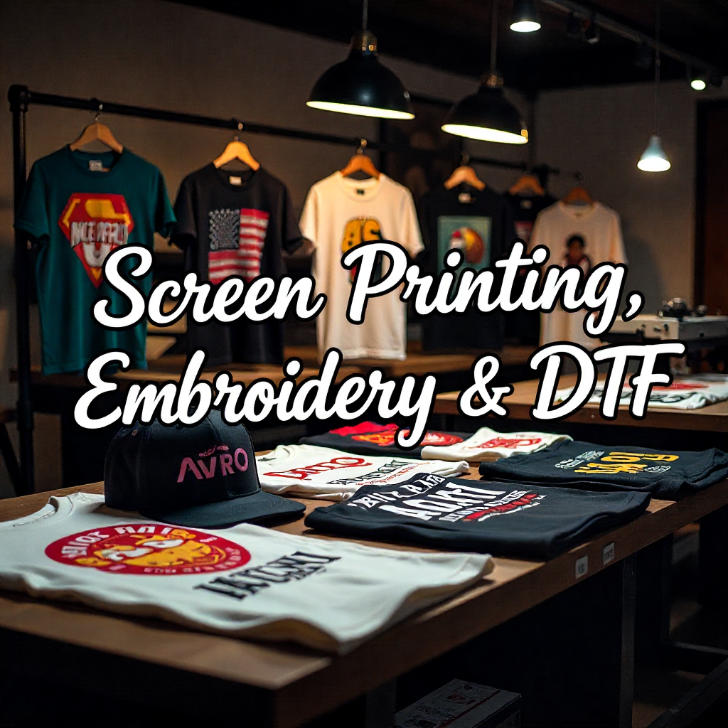 At AVRO Prints, we don’t just print—we create statements. From bold Screen Printing to detailed Embroidery and vibrant DTF designs, we help your brand, team, or event stand out in style. Quality, creativity, and a touch of flair—that’s what we bring to every project.
